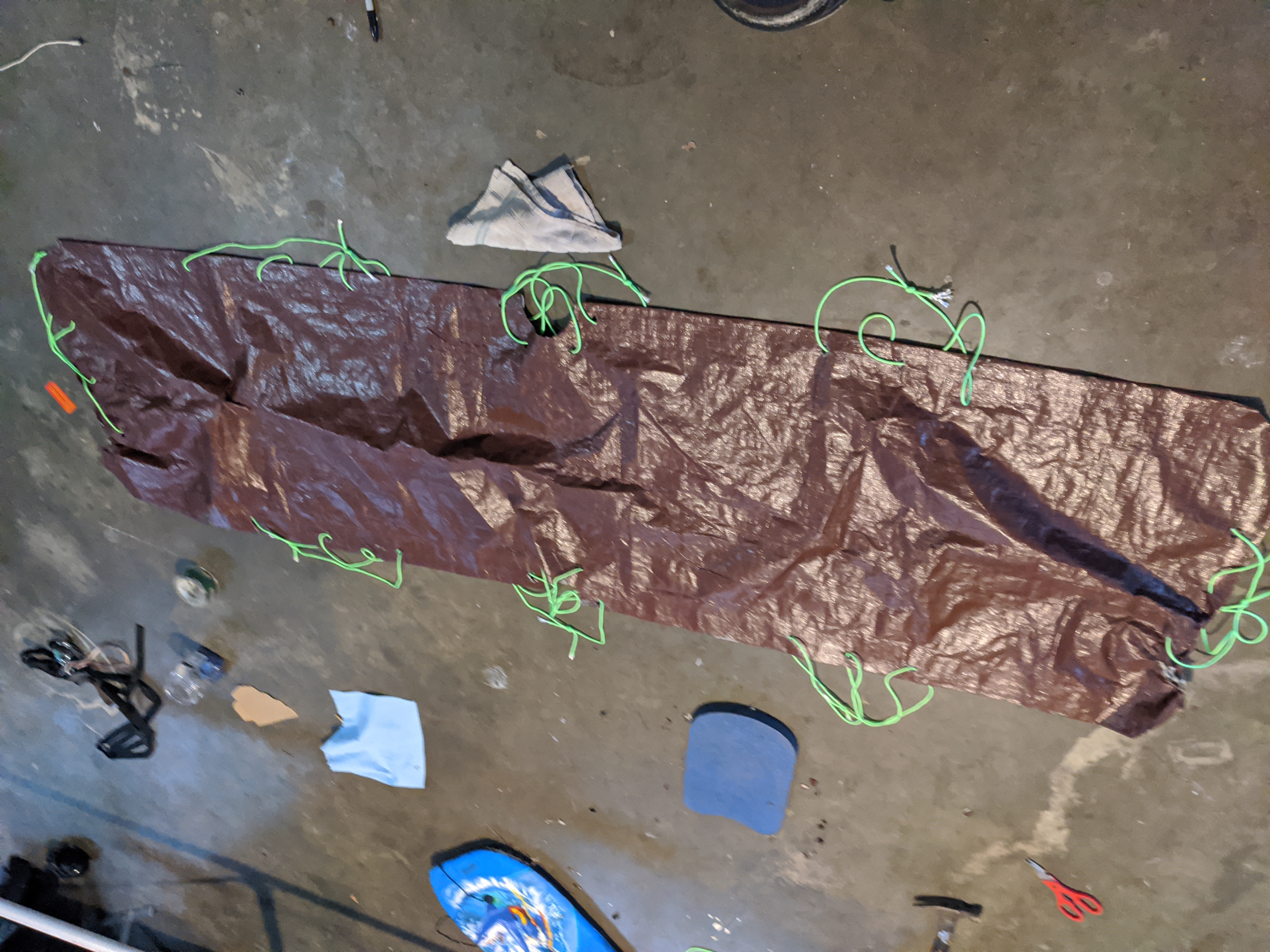 Testing tensile strength of heavy duty tarp from HomeDepot. I was also testing ways of ataching paracord to the tarp, in the end I had to abandon this because tarps are simply to week.