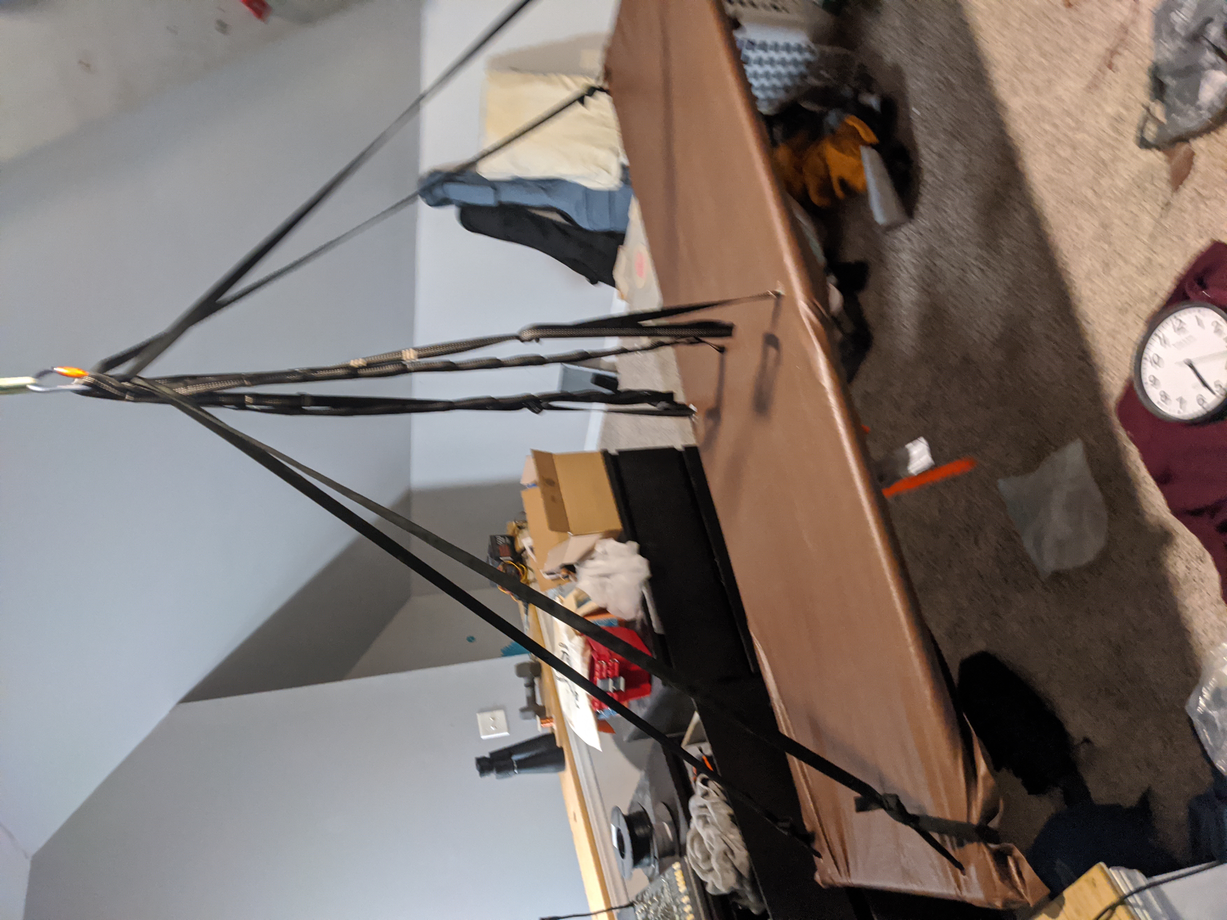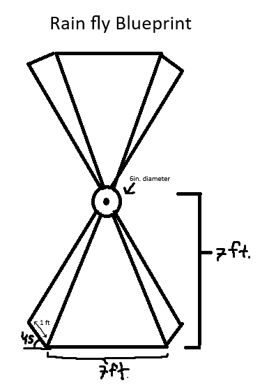 This projct had anouther goal other than being cheap, I wanted to constucted it out of the most rudementry tools posible, I wanted to design it in a way that any joe-shamo could go to HomeDepot with $200 and a eavning off and end up with a funcional portaledge, while moast of this project is posible this way, the one thing I could not figure out, that caused me to cave and use a sewing machine, was the main peice of fabric on the bottom, originaly I tried and tried again to make a tarp and paracord to work, but due to the material that a tarp was made of, it simply did not work, it was not strong enough and every time I weighted it, it would undergo plastic elongation, it basically funtioned veary simaler to how streching a groshery bag works. I'm sure there is a way to tie knots in the nylon fabric I used for the bottom in a way that would midagate the need for sewing.