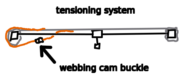 simaler to an actual portaledge, the nyalon base has to be tentioned somehow after assembleing as to prevent it sagging too mutch, this is done with 3 sets of webbing cam buckles.
